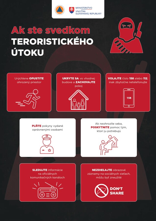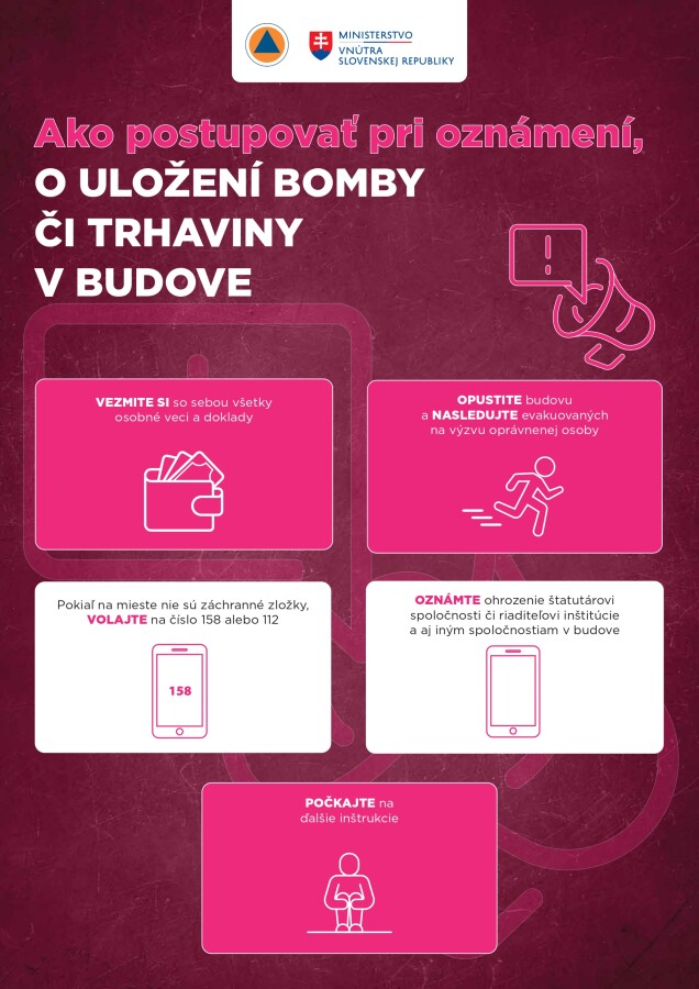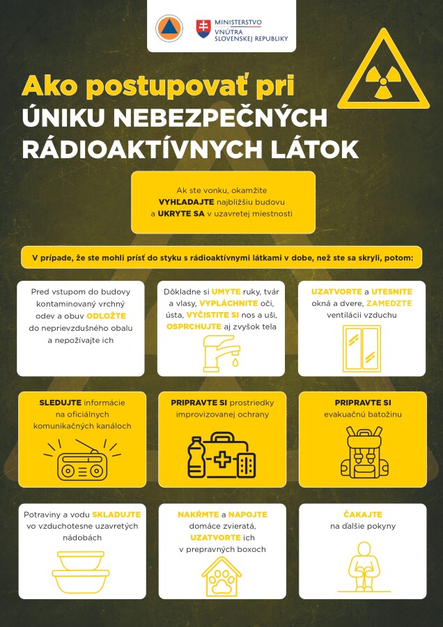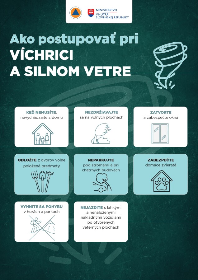 Pri mimoriadnych udalostiach zachovajte pokoj, sledujte oficiálne informácie a riaďte sa pokynmi záchranných zložiek. Viac informácií nájdete v prílohe.